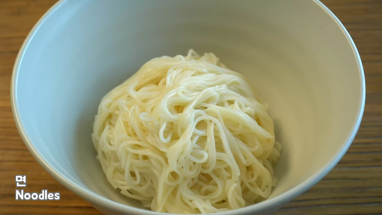 면 삶기: 면을 삶은 후 찬물에 헹궈 준비합니다.