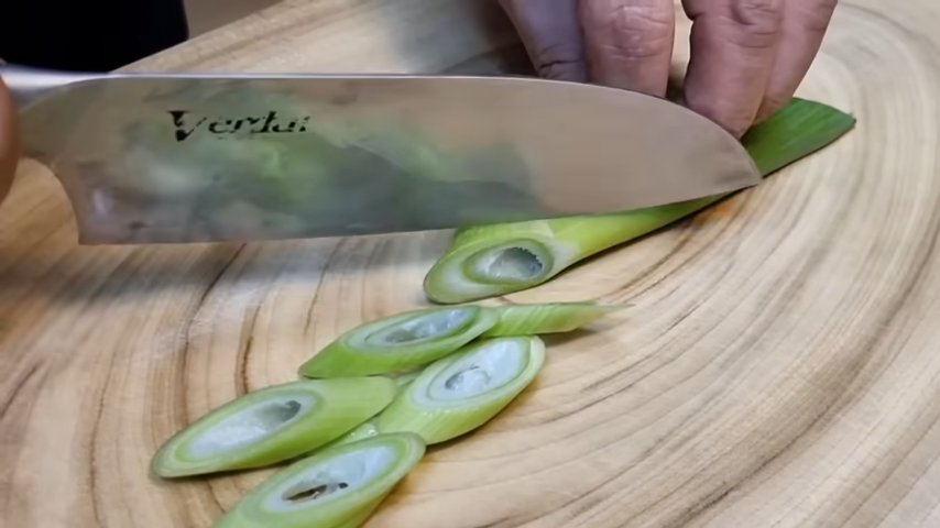 물이 끓는 동안 대파를 썰고 계란을 풀어 놓습니다.