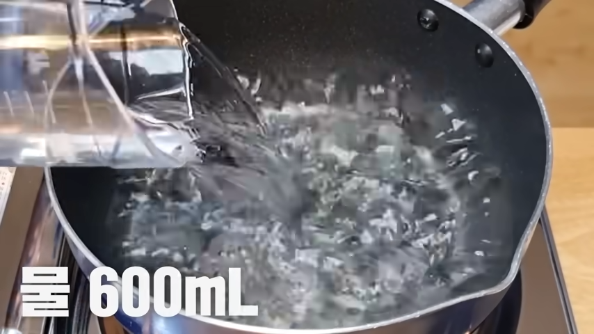 먼저, 물 600ml를 냄비에 넣고 끓입니다.