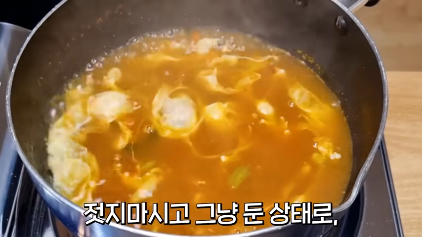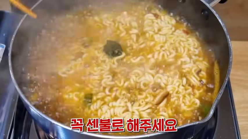라면을 끓이는 동안 불 세기를 조절해가며 면발이 꼬들꼬들하게 익도록 합니다.